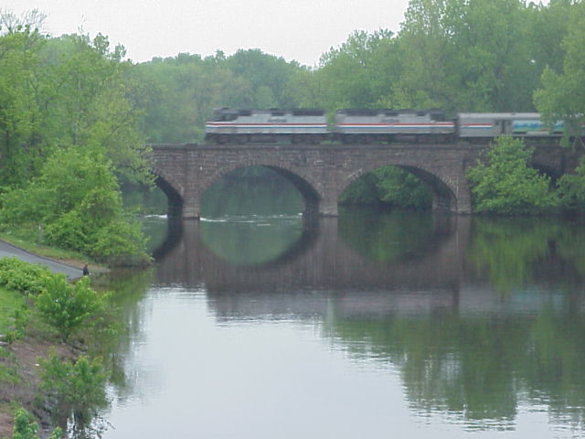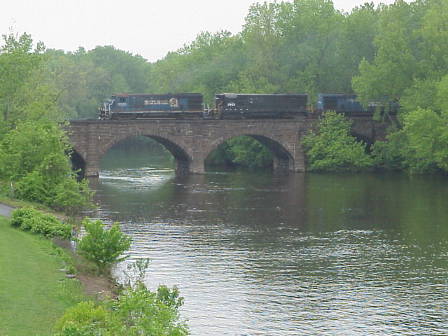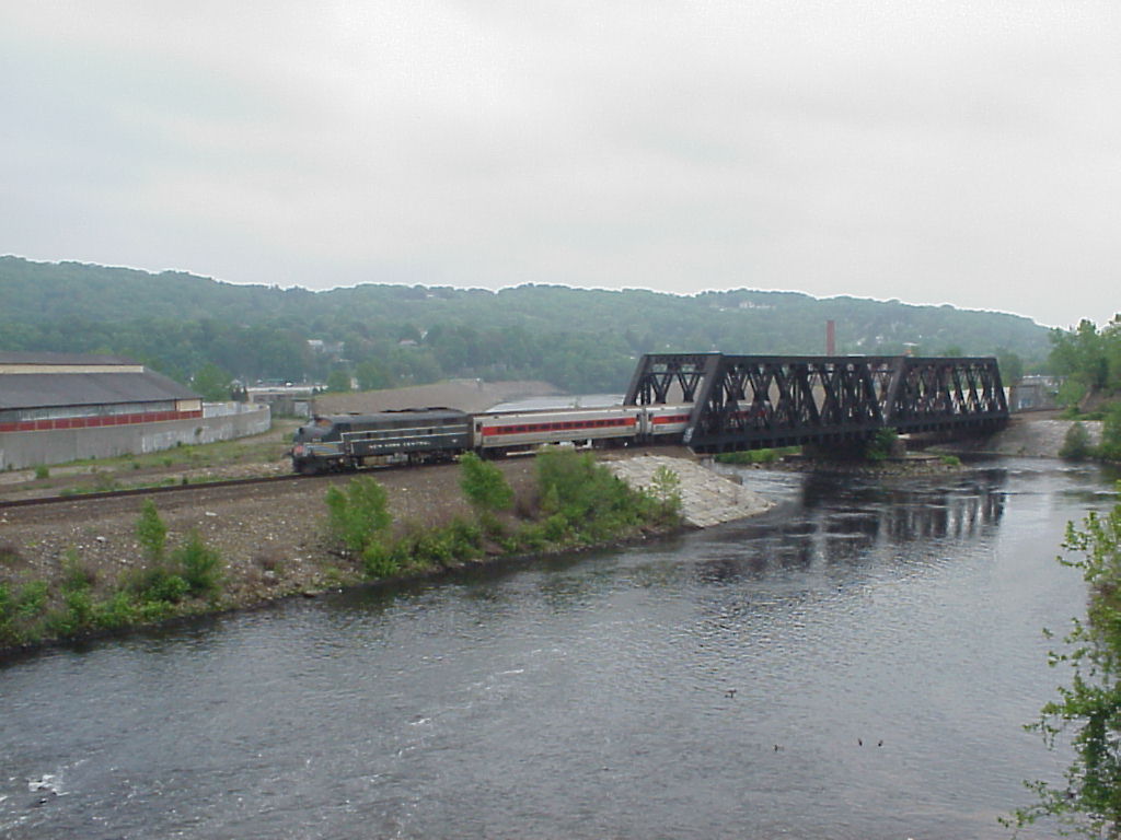 From there, I drove down to Ansonia to look at what is probably the premier photo location on the line--the bridge over the Naugatuck River. I made a stop in town to get gas and check my voice mail, and went back to the bridge to shoot the shuttle train on the bridge. (Photo) Trust me--this place looks a lot better in good light.....