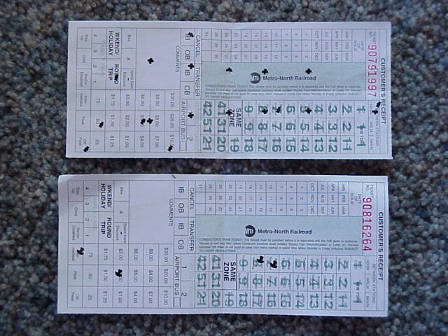 After walking out onto 42nd Street and buying a couple hotdogs from a vendor, we went to board our outbound train, but of course, we had to walk to the front and get a picture of the head end first. (Photo) We rode back to New Hamburg, NY, so we could ride through the Breakneck Ridge tunnels and past Bannerman's Island, and then caught another train back to Garrison. (Photo) And of course, I still have the tickets to prove it. (Photo)