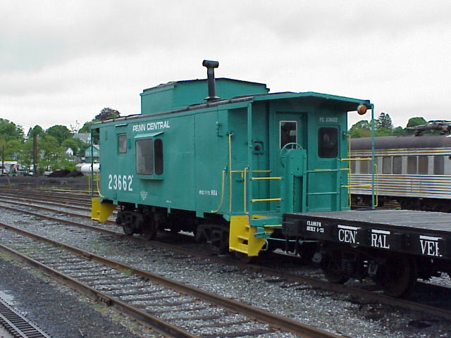 I got a tour of their equipment in their railyard and I made judicious use of the digital camera during it. Among their items is class N8A Penn Central caboose which was built from a New Haven NE6 caboose (Photo) and an ex-Pennsylvania Railroad boxcar that someone put Penn Central worms on over the PRR keystone. (Photo)