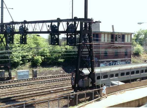 The Chestnut Hill area, on the northwest side of Philadelphia, is a very high-class area. Both the Reading and Pennsy had commuter branches to Chestnut Hill; indeed, the ends of both lines are a few blocks apart from each other. I shot the Chestnut Hill stations of both lines, along with Austin Tower located just south of the station on the ex-PRR line (now called the R8 Chestnut Hill West line by SEPTA; the ex-RDG line is the R7 Chestnut Hill East line). I photographed trains at the St. Martins station and on the 60-foot high Chreshem Creek trestle on the Chestnut Hill West line, along with an outbound train at Gravers and an inbound train at the Chestnut Hill East station on the R7 line. (The Chreshem Creek trestle shot was also inspired by a shot in Don Ball's book, on page 65, although the bridge has since been replaced after the shot in the book was taken.)